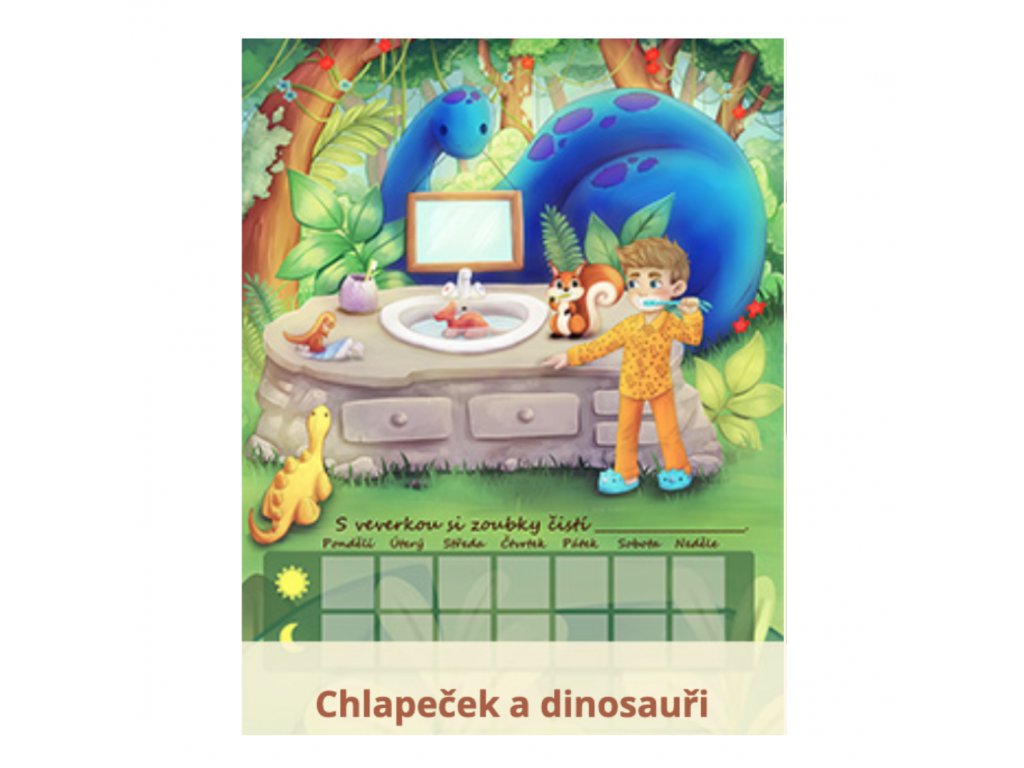 Motivační tabulka na čištění zubů - chlapeček a dinosauři